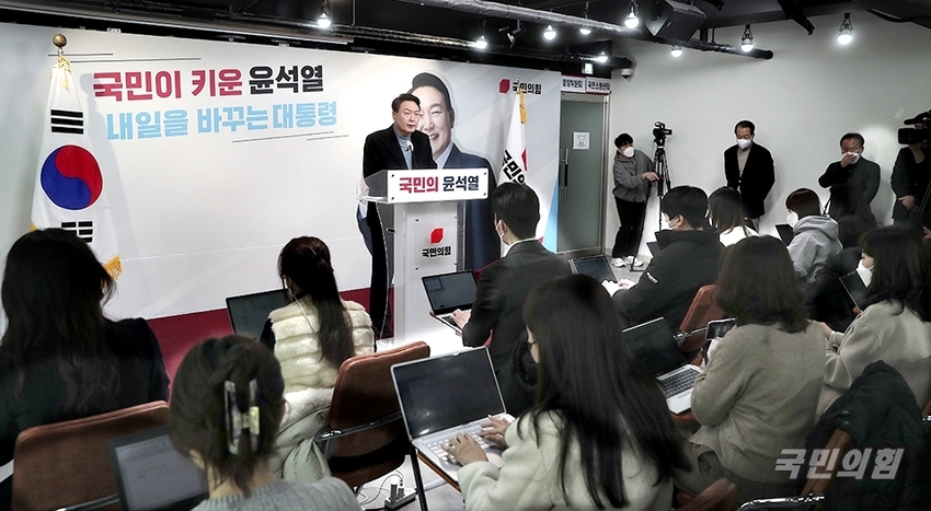 윤석열 대통령 후보는 2022.2.27.(일) 13:00, 중앙당사 3층 브리핑룸에서