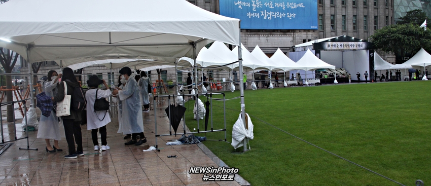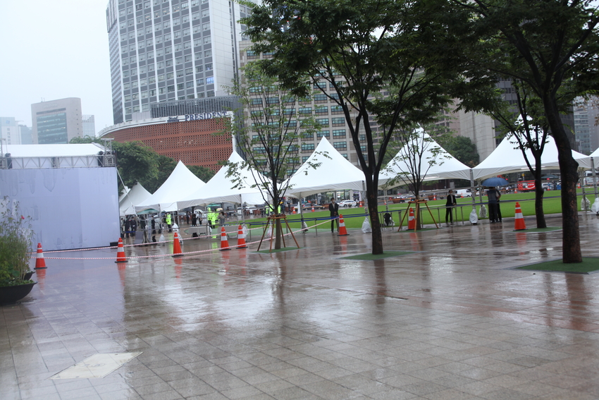 한편 서울시청 광장에 마련된 고 박원순 서울특별시장 분향소에는 오후 6시경 비가 오는 가운데