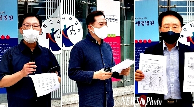 [NEWSinPhoto 뉴스인포토닷컴/#대면예배 10만 명 교회도 19 명만!] 4단계 지역 대면예배 금지에 대한 집행정지 가처분 신청, 서울(행정법원) 경기(수원지법), 인천(인천지법), 대전(대전지법)…….예배회복을위한자유시민연대(예자연).20210729. 행정법원 앞.