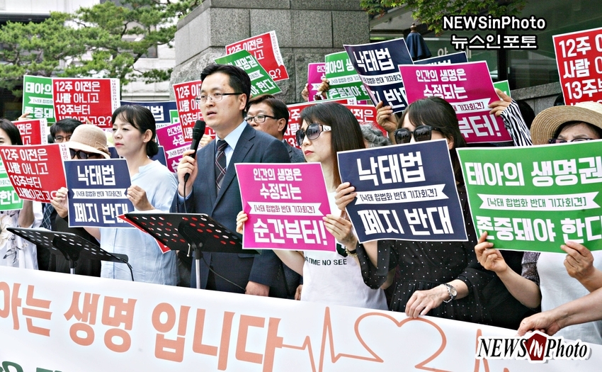 낙 태 합 법 화 반 대 기 자 회 견이 11일 오후1시30분 종로구 헌법재판소 앞에서