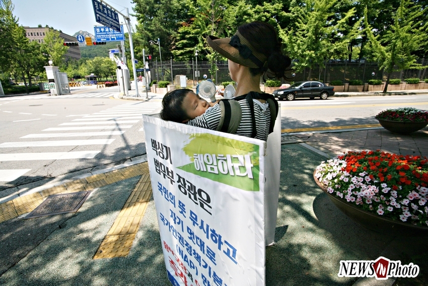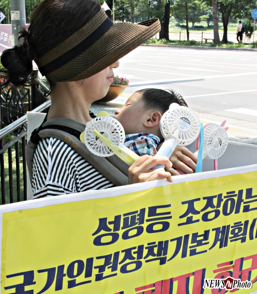 특히 무더위에 잠든 어린아이를 가슴에 안고 손 선풍기를 세개나 들고 자녀세대의 밝은 미래를 열어주기 위해 먼 길 달려와 일인시위하는 어머니의 모습은, 하늘도 감동할만한 장면이어서 기자가 양해를 구하고 사진 몇 컷을 남겼다.