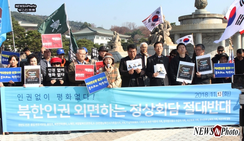 그동안 우리 북인권단체들은 올해 세 차례의 남북 정상회담에서 문 대통령에게 북한인권 문제, 즉 ① 김정욱 선교사 등 자국민 석방, ② 정치범수용소 해체, ③ 국군 포로 생사확인과 송환, ④ 강제송환 탈북민 처벌 중지, ⑤ 전시 및 전후 납북자 생사확인과 송환, ⑥ 이산가족 자유왕래 문제 등을 남북정상회담 의제에 포함시킬 것을 요구했으나 계속 거절당했다..