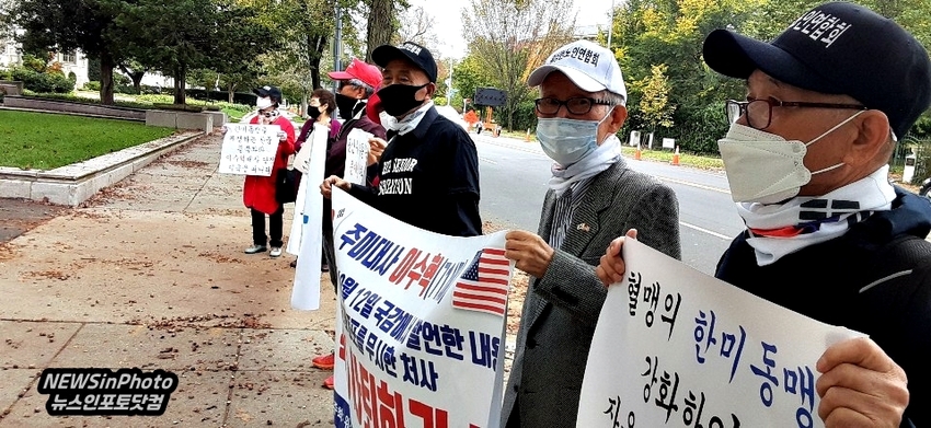 [NEWSinPhoto뉴스인포토닷컴/#워싱턴 한인애국단체 뉴스] "이수혁 대사 물러가라", 주미대사 규탄 워싱턴 성토 집회……. 워싱톤 한인애국단체 일동.20201016.워싱톤 주미한국대사관 앞
