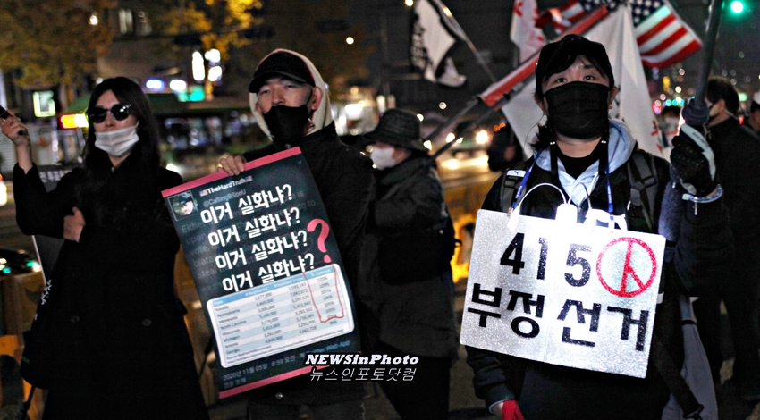 [NEWSinPhoto뉴스인포토닷컴/#Fraud Election]”4.15 부정선거 의혹, 청년들의 예측과 분석이 관통했다!”, 한국에선 무시되고….미국에선 사기, 조작 사실로 드러나!. 꿈꾸는 청년들.경복궁역출구. 20201114.