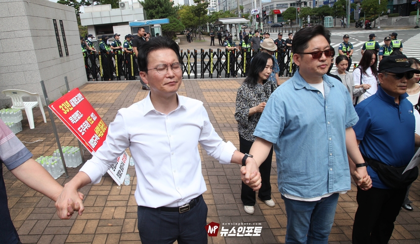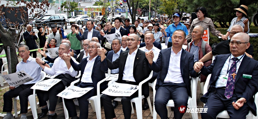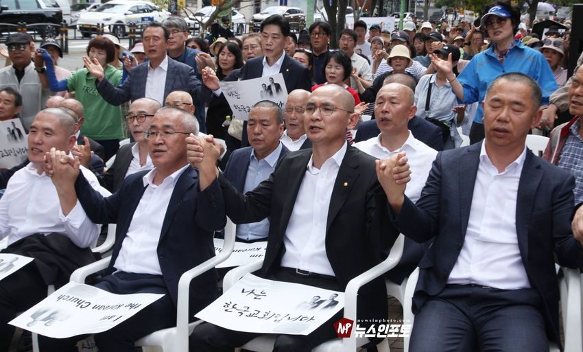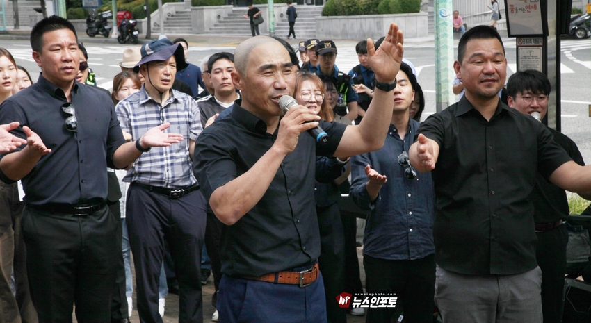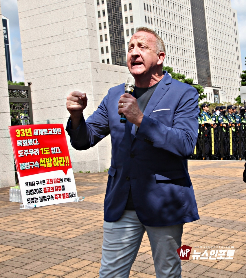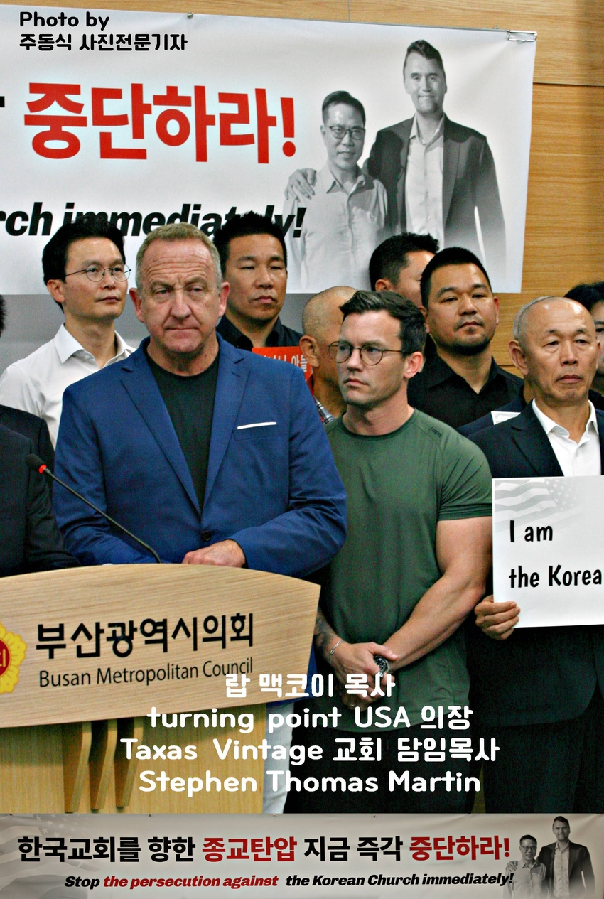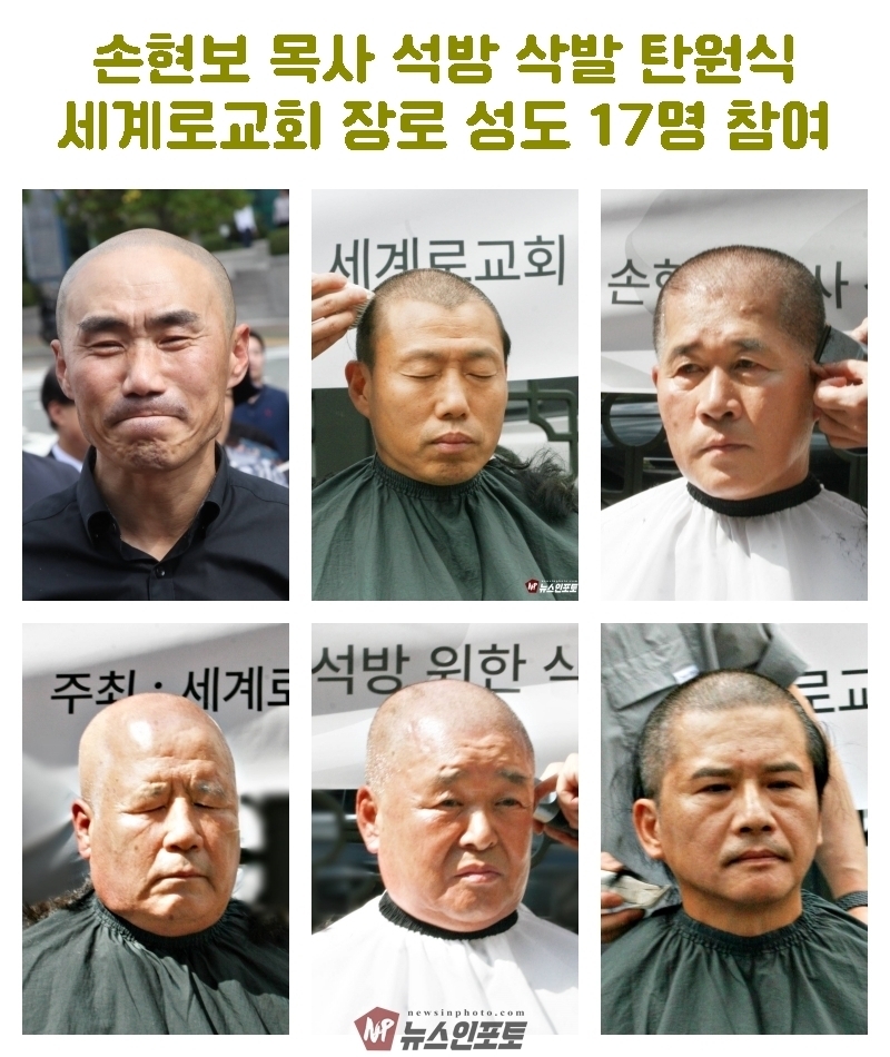 [뉴스인포토닷컴 주동식 기자] 손현보 목사 석방 삭발 탄원식 세계로교회 장로 성도 17명 참여, 구속적부심 재판장 김도균 부장판사 규탄, '이완용' 언급, 손현보 목사 목회활동 반민족적 극우적인 행위 규정,.밥 맥코이 목사 turning point USA는 한국교회와 함께 싸울 것!, 기독교인들 다 들으십시요!진실은 거짓에 대해 두려워하지 않습니다 진실있는 곳에 거짓이 있을 수 없습니다,.기짓에 대해 싸워야 합니다.우리는 폭력을 말하는게 아닙니다.ㅡㅡㅡㅡㅡ20250929. 부산지방검찰청 앞.세계로교회 삭발 탄원식 진행.ㅡㅡㅡㅡㅡ글.사진 주동식 사진전문기자. 독립언론 뉴스인포토닷컴 대표. ㅡㅡㅡㅡㅡㅡㅡㅡㅡㅡㅡㅡㅡㅡㅡㅡㅡㅡㅡㅡㅡㅡㅡㅡㅡㅡㅡㅡㅡㅡㅡㅡㅡㅡ 손현보 목사 석방을 위한 삭발 탄원식이 지난달 9월 29일 월요일 12시 부산지방검찰청 앞에서 진행되었다. 세계로교회 장로 성도 등 17명이 삭발식에 참여했고, 탄원식에는 세계로 교회 성도 및 시민들이 참석한 가운데 이날 오전 부산 구치소에서 손현보 목사를 면회한 turning point USA Faith 의장인 랍 맥코이 목사도 메시지를 전했다.랍 맥코이 목사는 전날 세계로 교회 주일예배에서도 설교를 했다. 이날