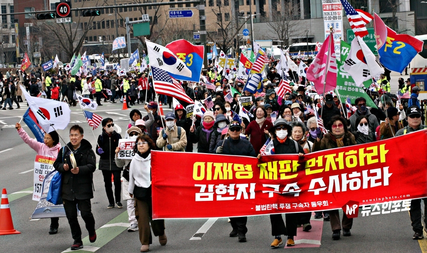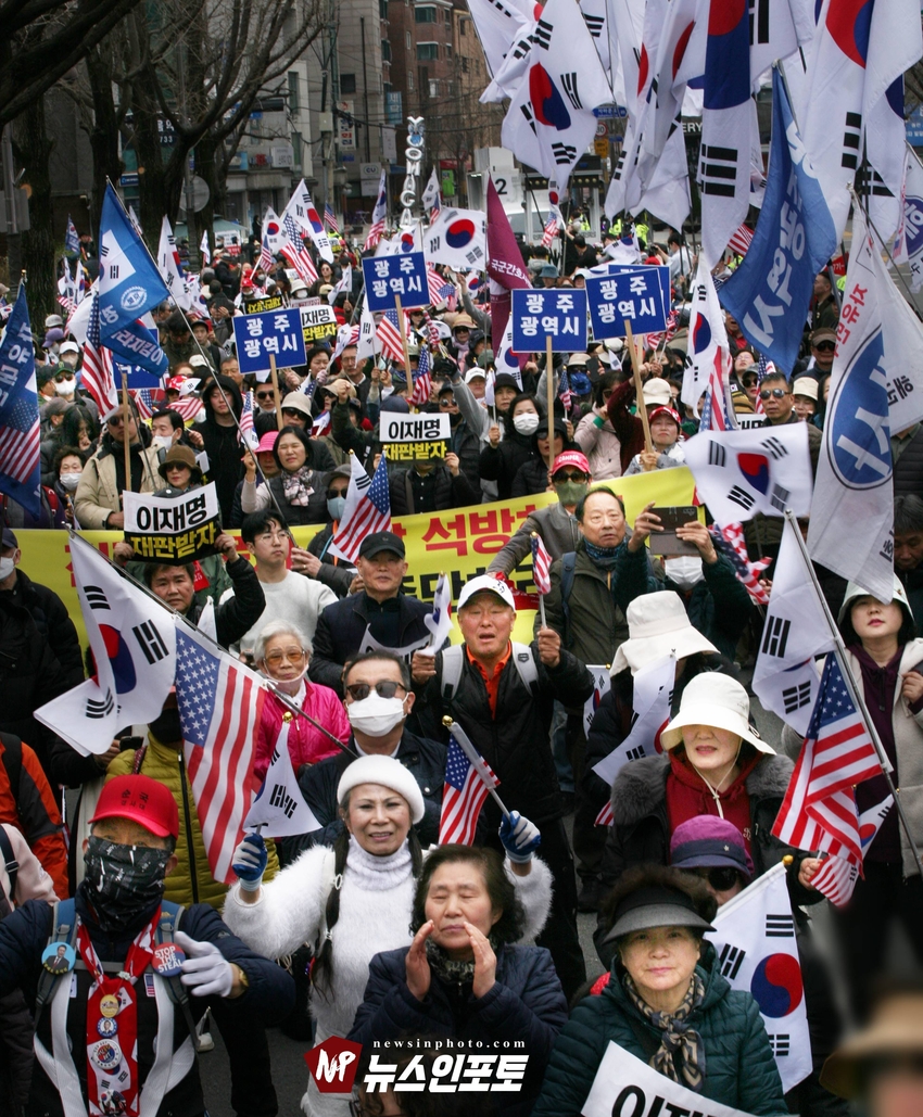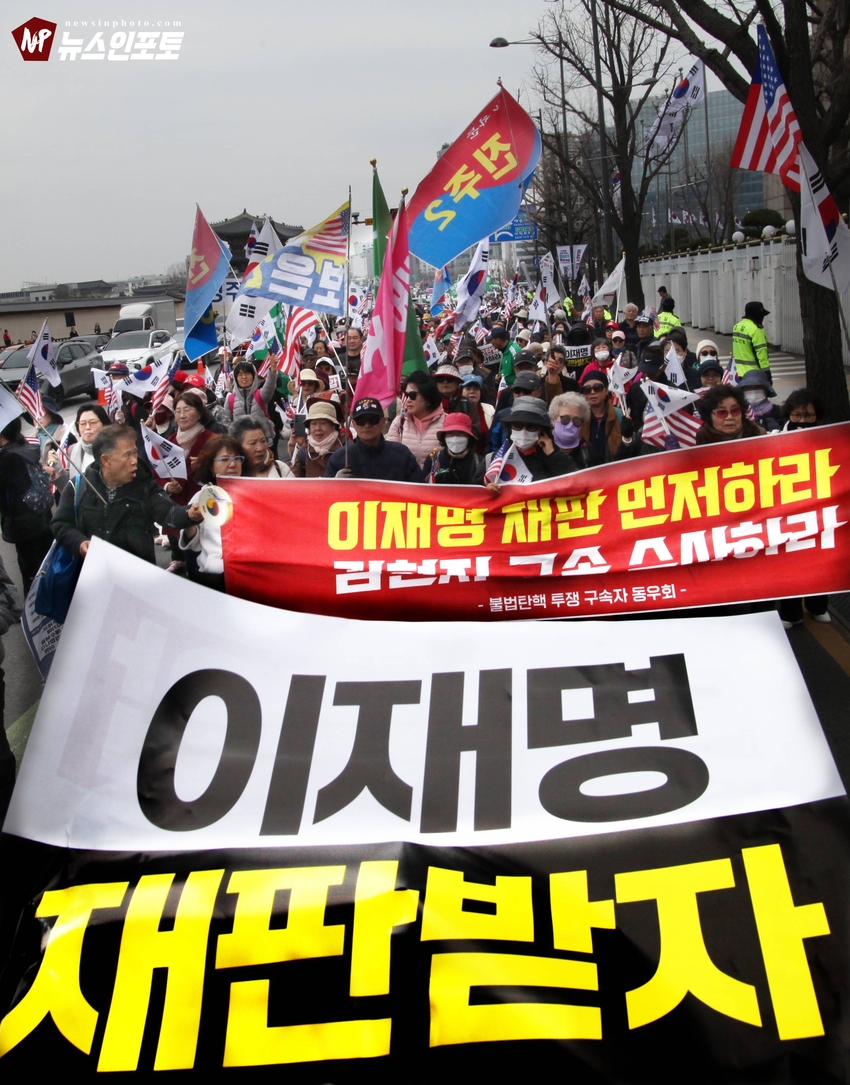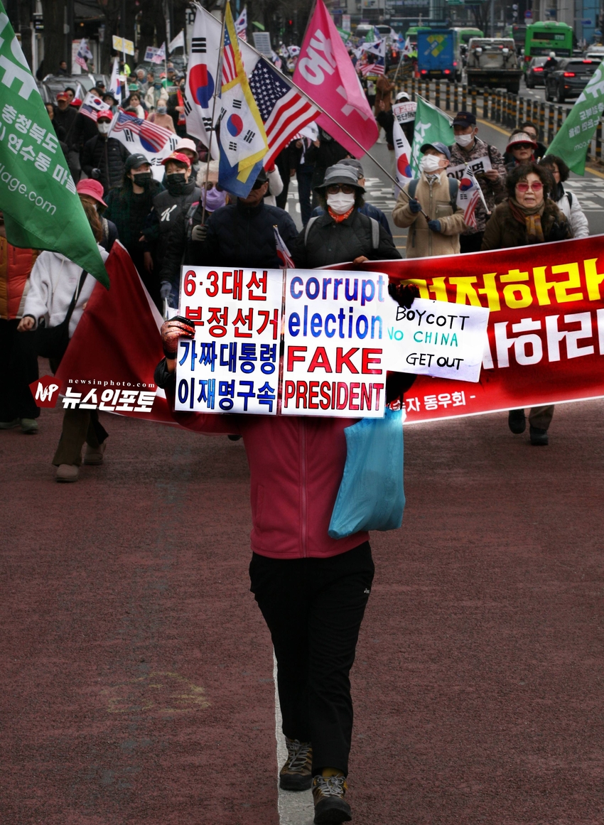 이재명 구속! 민주당 해체! 이재명은 재판 받고, 하야하라!, 광화문 국민대회 후, 청와대 분수대까지 4년만에 거리행진!, 전국 24개 시도 상경 투쟁 참여 국민들 악법 제정 분노, 민주당 규탄!, 광주,부산, 진주, 보수 애국시민들 8년째 매주 토요일 상경 광화문 투쟁 참여!.ㅡㅡㅡㅡㅡ20260314. 대국본 광화문 국민 혁명대회. ㅡㅡㅡㅡㅡ( 시민독립언론 뉴스인포토닷컴 글.사진=주동식 사진전문기자) ㅡ 우리가 믿는 구석은? 원래도 지금도 앞으로도 오직 하나님이시고, ㅡ 죽을 각오로 여기까지 버텨온 바로 여러분이십니다. ㅡ 얄팍한 세상과 자기 이득에 눈먼 사람들과 우리는 근본부터 다릅니다. ㅡ 우리는 일희일비하지 않습니다. 세상이 우리를 흔들 수 없습니다. ㅡ 목숨 걸고 견디는 자가 이기는 것입니다며 박근혜 대통령 정권 테블리PC, 최순실 국정 농단 수사 촉구 함성으로 들끓었던 2016년 11월부터 좌파 촛불 행동, 민노총은 청와대로 향하는 안국동 경복궁, 효자동 대로를 경찰과 대처하며 모든 진입 골목을 확보하기 위해 밤을 새우던 시위대 모습을 볼 수 있었고, 2017년 3월 헌법재판소 탄핵 선고될 때까지 밤마다 청와대 인근은 밤마다 음울한 구호소리로 저녁
